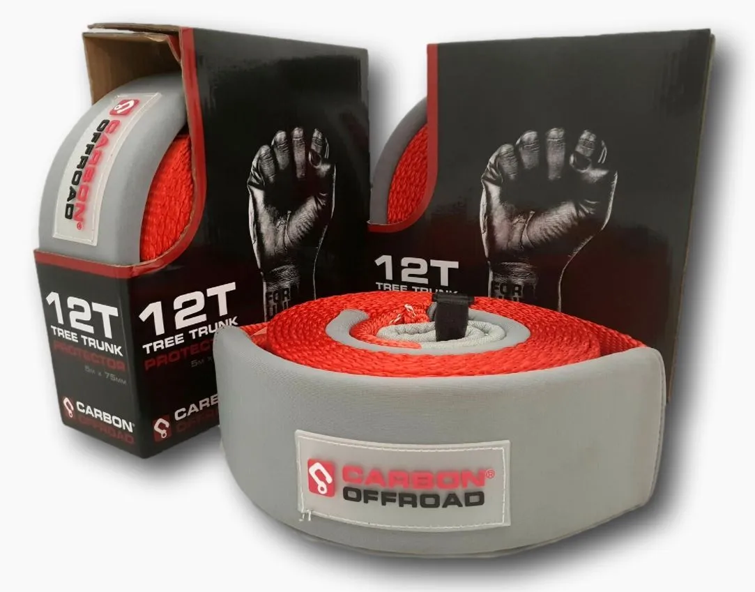 The Carbon Offroad 5M tree protector is a versatile bit of gear. Most of the cheaper brands on the market Only offer a 3 metre long strap, and frankly they are useless! In our experience a 5M strap will get you slinging even the biggest trees on the market. Being a massive 12 Tonne minimum breaking strain it is suitable for use with even our biggest winch the 17000lb truck winch. Our Tree Strap is actually a sewn tubular sling rather than a flat webbing strap, this gives it additional longevity and strength without a lot of weight.
