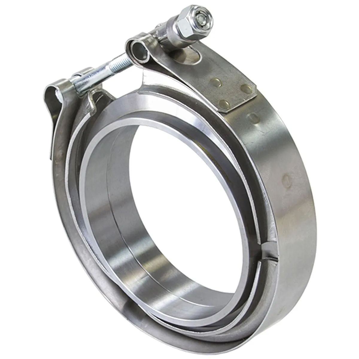 Aeroflow Performance V-Band kits make it easy to install and remove exhaust systems and turbo parts. The self-aligning V design weld flanges have been designed with a male to female connection which not only helps align the bands but also provides multiple sealing surfaces which prevent leaks and warping. These self-aligning V band exhaust clamps are uniquely designed to help keep your exhaust system operating properly and, even more importantly, allow you to disassemble your system for service or to repair other systems on your vehicle.