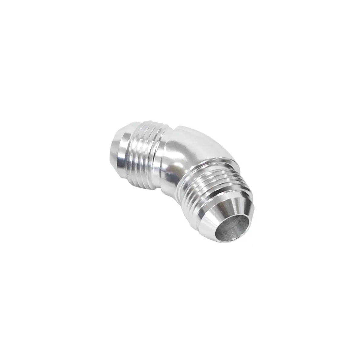 Male to Male ull flow AN union. Allows you to connect two female hose ends with a 45 degree bend. The full flow design ensures no restriction in flow from matched hose sizes.