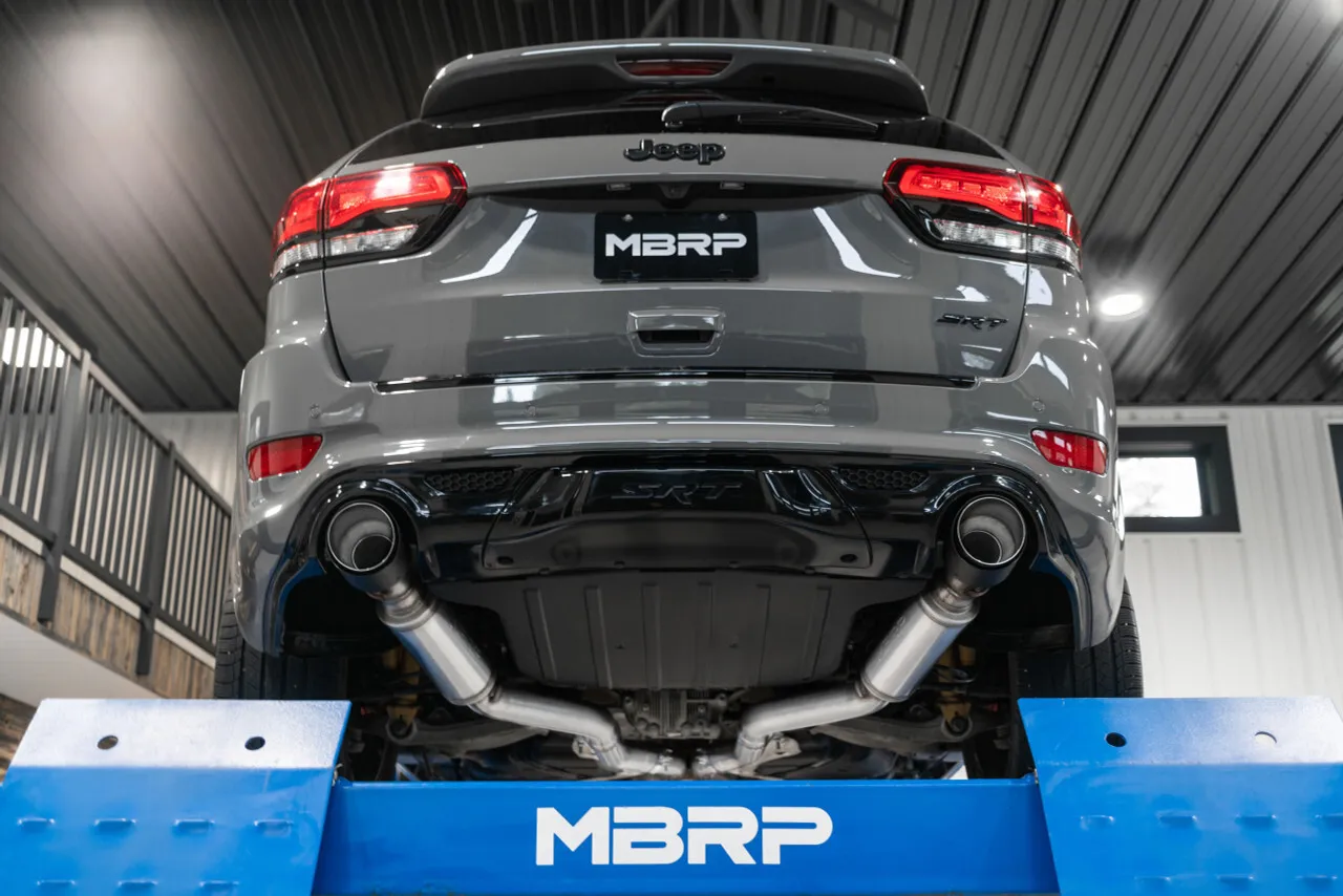 Your Jeep Grand Cherokee SRT is a wolf in sheep's clothing, and now your wolf will have the bark it deserves thanks to a 24% flow increase over stock from MBRP's 3-Inch Cat-Back, Dual Rear Exit exhaust system. Just think, you pull up to the soccer pitch parking lot with all the other parents looking over and thinking "Wow they mean business. I bet their kid is the next Messi!" and now you're already in their head before the match even starts. You've already won. Choosing between Carbon Fiber or T304 Stainless Steel tip options, you can upgrade your SRT's look while getting that signature MBRP sound you know and love.