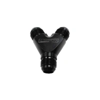 Aeroflow Performance Y block fittings are a good looking and effective way of splitting one line into two. These one-piece design blocks machined from 6061-T6 billet aluminium provide a smooth flow path for all types of fluids. The Y-fittings are available in different AN sizes in both male and female fittings to suit your applications. Anodized in either blue, black or silver finishes.