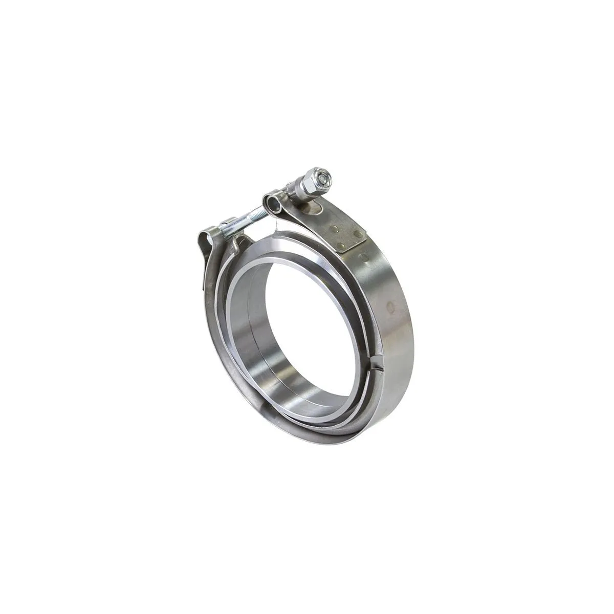 Aeroflow Performance V-Band kits make it easy to install and remove exhaust systems and turbo parts. The self-aligning V design weld flanges have been designed with a male to female connection which not only helps align the bands but also provides multiple sealing surfaces which prevent leaks and warping. These self-aligning V band exhaust clamps are uniquely designed to help keep your exhaust system operating properly and, even more importantly, allow you to disassemble your system for service or to repair other systems on your vehicle.