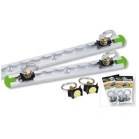 Rated to 750LBS working load limit with a 1500LBS breaking strain. The set includes 2 tracks and four spring loaded locking anchor rings. Additional anchor rings can be purchased separately.