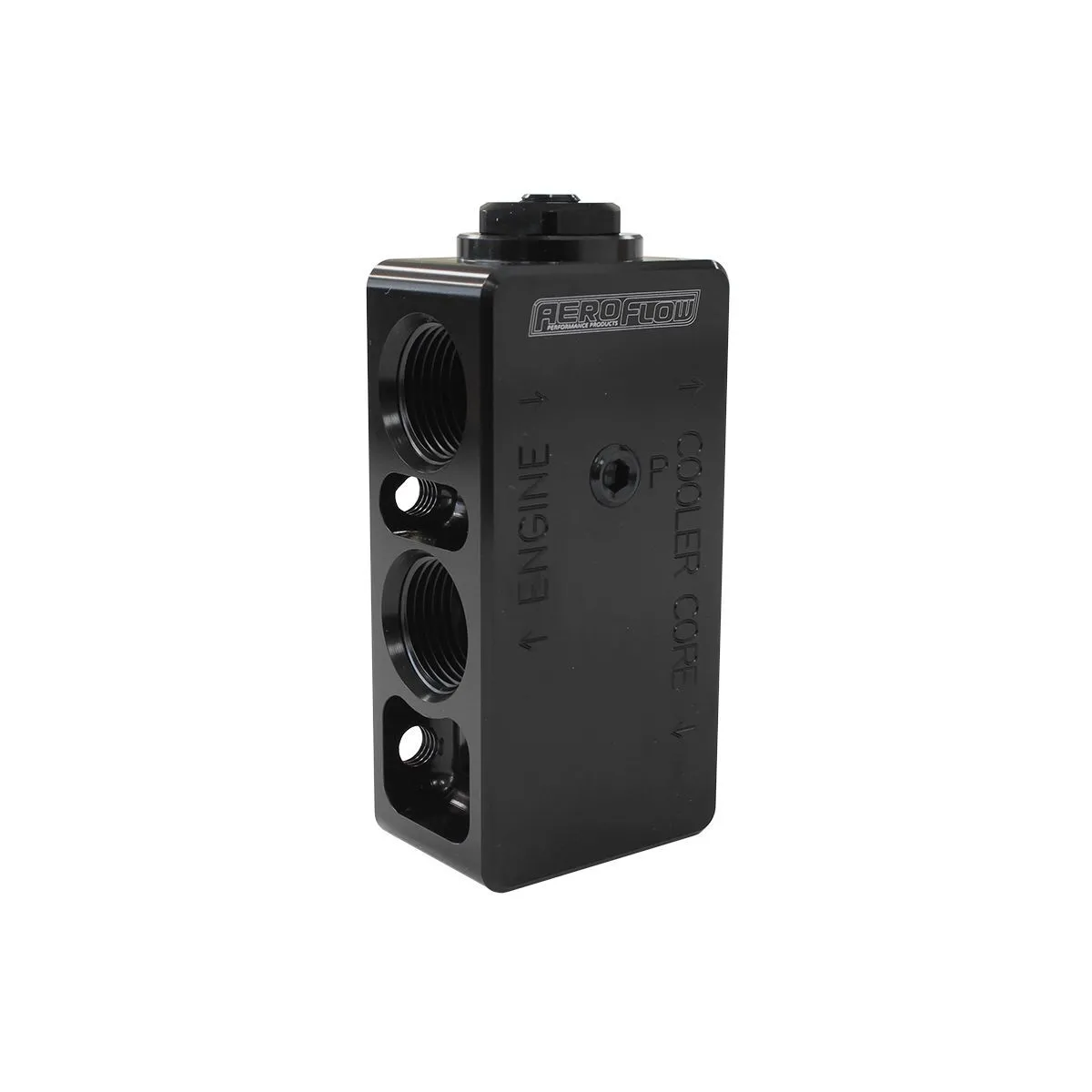 Perfect for use with Aeroflow oil coolers, this Billet Aluminium thermostat helps maintain engine oil temperature by holding the oil until it reaches operating temperature at (82°C) 180°F when the thermostat is fully open to allow full flow to the oil cooler. It will self-adjust flow according to the oil temperature to maintain a constant operating oil temperature just like a coolant thermostat would operate.