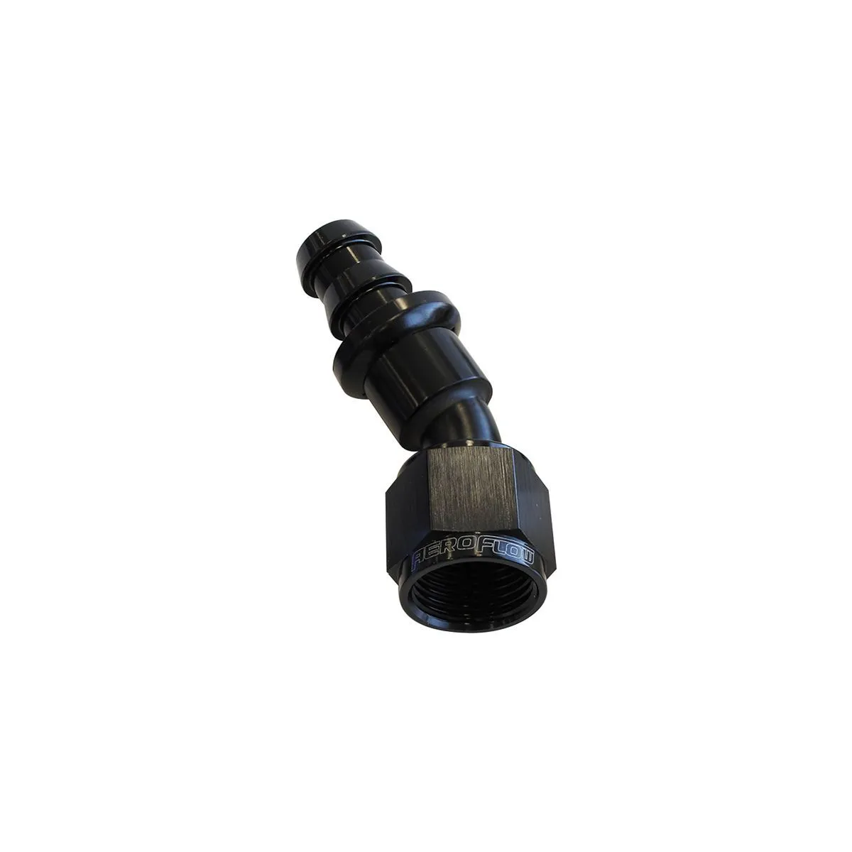 Note: Not compatible for power steering and automatic transmission line applications. Hose ends are hard anodised (excluding Silver finish).Aeroflow's 400 series push lock fittings are a mandrel bent braised full flow fitting with a custom designed barbed end to allow a quick, easy and leak free assembly. Aeroflow's push lock fittings come with a purpose designed cover to hide the messy cut end of the hose to give you that professional look everytime. Compatible Hose: 400 and 500 Series Push Lock hose (Blue and Black).