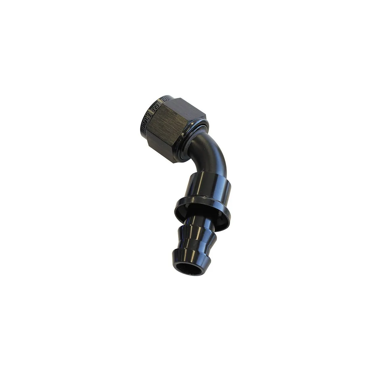 Note: Not compatible for power steering and automatic transmission line applications. Hose ends are hard anodised (excluding Silver finish).Aeroflow's 400 series push lock fittings are a mandrel bent braised full flow fitting with a custom designed barbed end to allow a quick, easy and leak free assembly. Aeroflow's push lock fittings come with a purpose designed cover to hide the messy cut end of the hose to give you that professional look everytime. Compatible Hose: 400 and 500 Series Push Lock hose (Blue and Black).