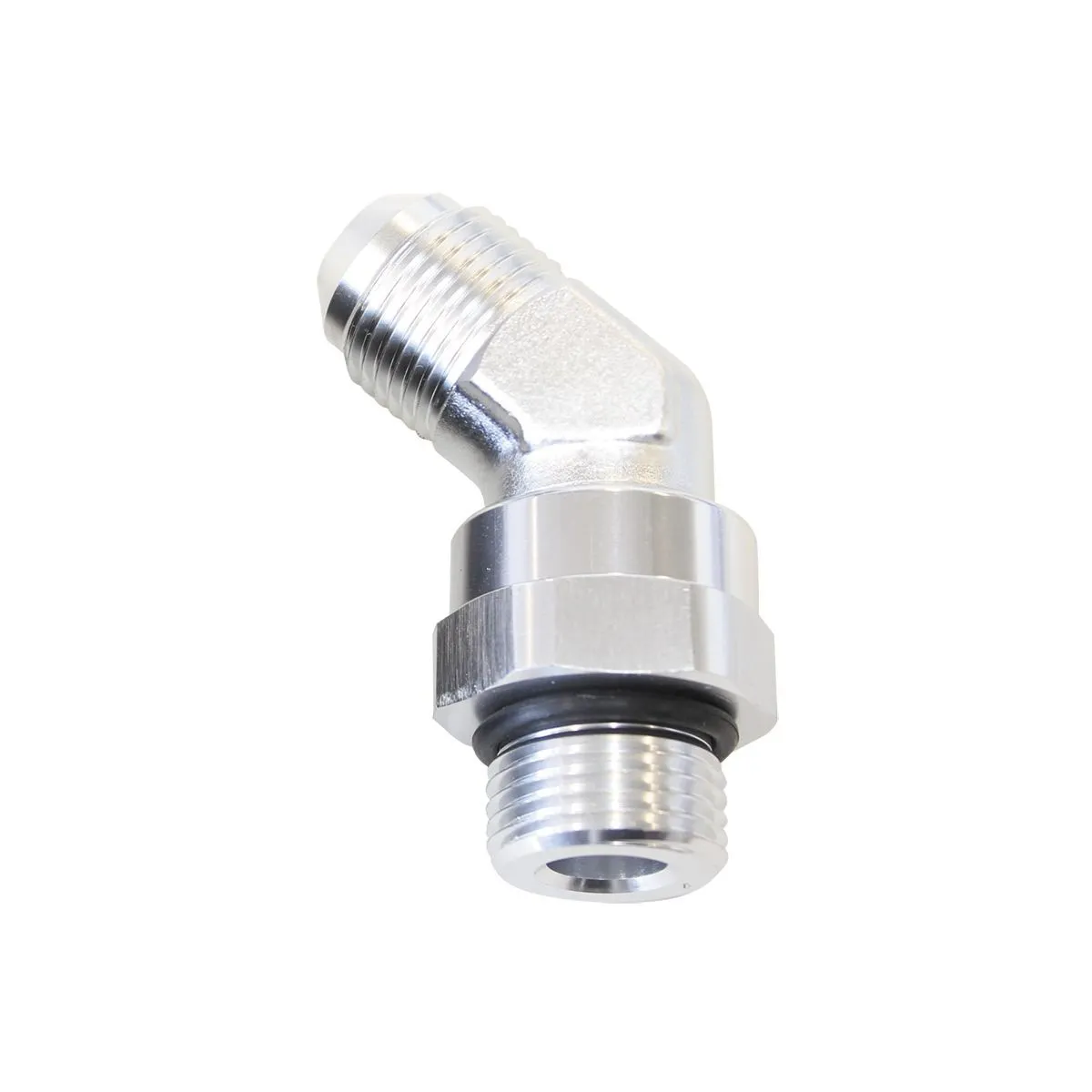 Male to Male full flow ORB to AN adapter. Adapt from an ORB thread to AN flare with a 45 degree bend and full 360 degree swivel. Various sizes available.