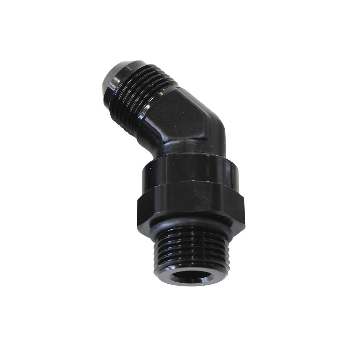 Male to Male full flow ORB to AN adapter. Adapt from an ORB thread to AN flare with a 45 degree bend and full 360 degree swivel. Various sizes available.