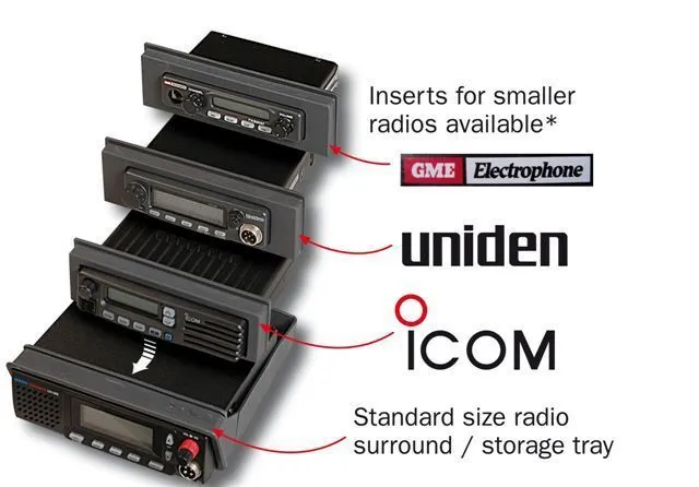Console Inserts for smaller radios "snap" into the radio DIN size tray supplied with console.