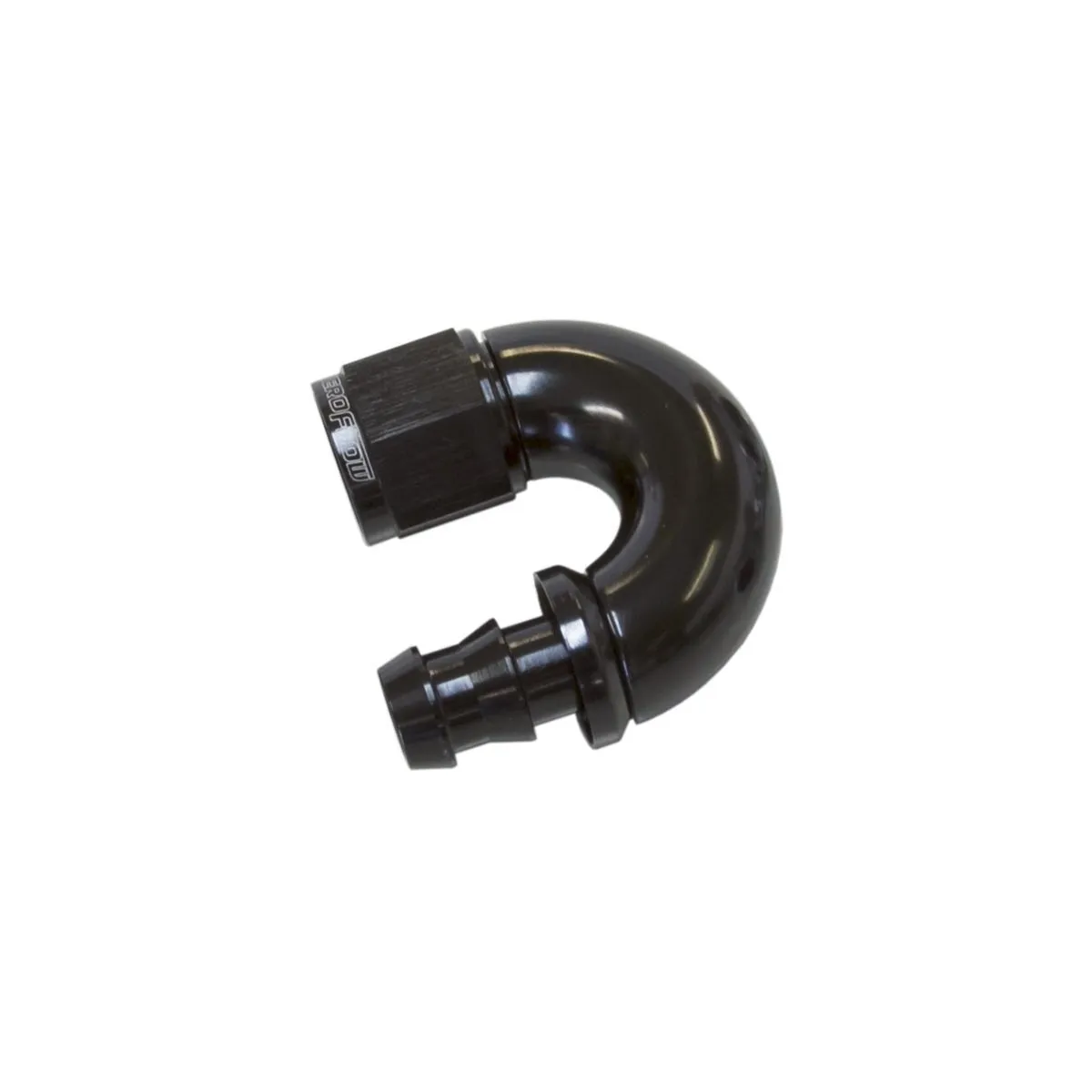Note: Not compatible for power steering and automatic transmission line applications. Hose ends are hard anodised (excluding Silver finish).Aeroflow's 510 series push lock fittings are a CNC machined one piece fitting which provide uninterrupted flow. The mandrel bent tight radius body has superior wall thickness with a custom designed barbed end to allow a quick, easy and leak free assembly. Aeroflow's push lock fittings come with a purpose designed cover to hide the messy cut end of the hose to give you that professional look everytime. Compatible Hose: 400 and 500 Series Push Lock hose (Blue and Black).