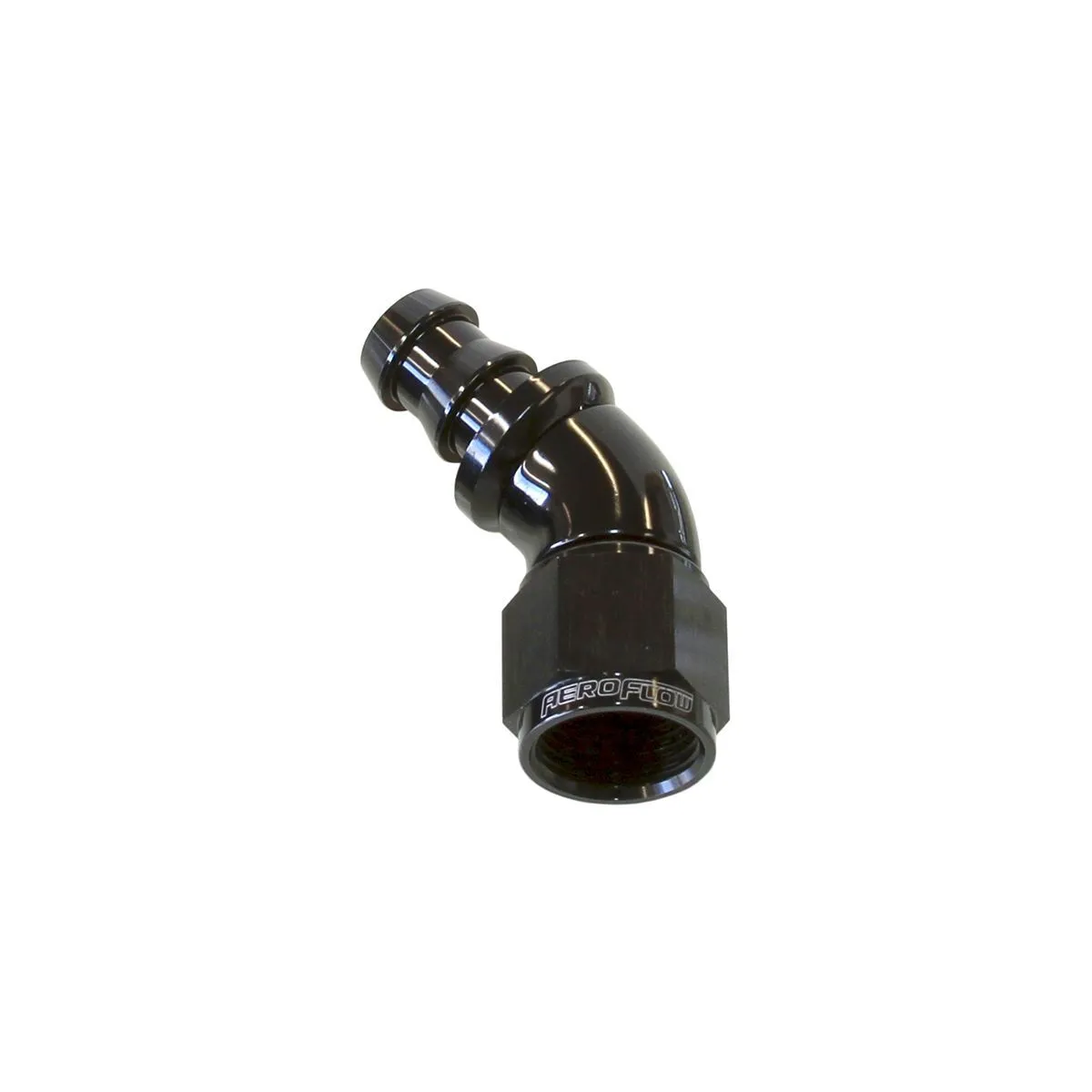 Note: Not compatible for power steering and automatic transmission line applications. Hose ends are hard anodised (excluding Silver finish).Aeroflow's 510 series push lock fittings are a CNC machined one piece fitting which provide uninterrupted flow. The mandrel bent tight radius body has superior wall thickness with a custom designed barbed end to allow a quick, easy and leak free assembly. Aeroflow's push lock fittings come with a purpose designed cover to hide the messy cut end of the hose to give you that professional look everytime. Compatible Hose: 400 and 500 Series Push Lock hose (Blue and Black).