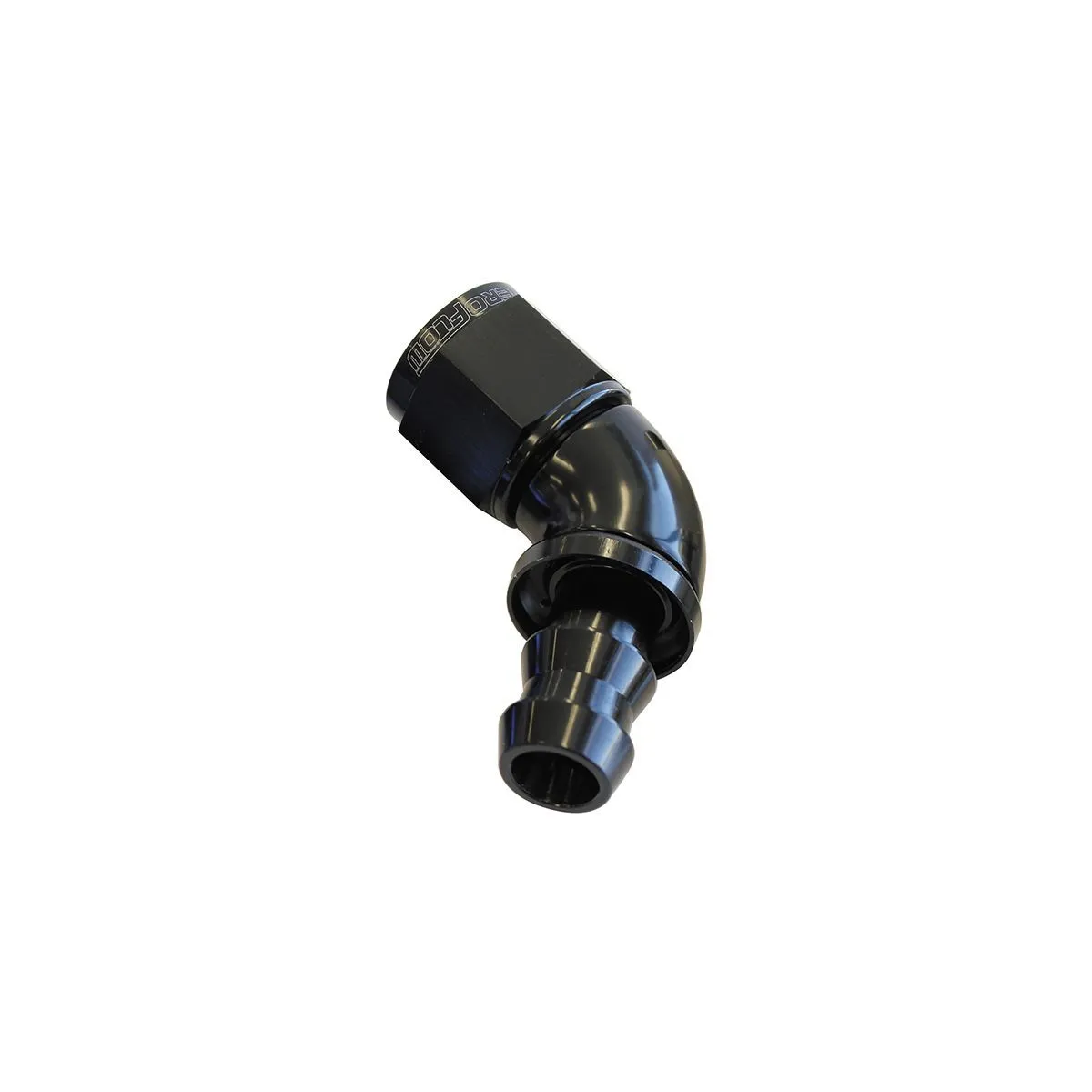Note: Not compatible for power steering and automatic transmission line applications. Hose ends are hard anodised (excluding Silver finish).Aeroflow's 510 series push lock fittings are a CNC machined one piece fitting which provide uninterrupted flow. The mandrel bent tight radius body has superior wall thickness with a custom designed barbed end to allow a quick, easy and leak free assembly. Aeroflow's push lock fittings come with a purpose designed cover to hide the messy cut end of the hose to give you that professional look everytime. Compatible Hose: 400 and 500 Series Push Lock hose (Blue and Black).