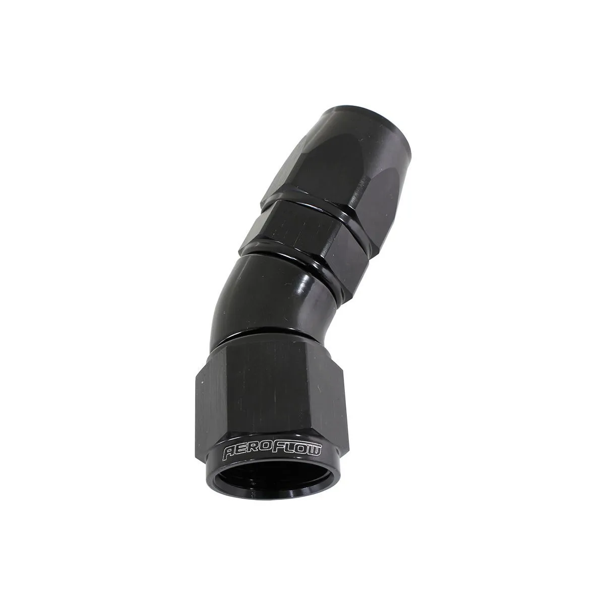 Aeroflow's 570 Series PTFE fittings are a CNC machined one piece fitting which provides uninterrupted flow. The purpose designed olive compresses into the PTFE (Teflon®) inner tube for easy, leak free assembly. The mandrel bent tight radius body has superior wall thickness and a swivel head allowing for easy adjustment. Aeroflow's 570 series fittings are the choice of professionals for use in power steering, automatic transmission, nitrous, fuel systems, cooling systems, vacuum applications, oil systems, brake and clutch lines. Compatible Hose: 200 Series Stainless Steel braid and 250 Series Nylon braid PTFE (Teflon®) hose.