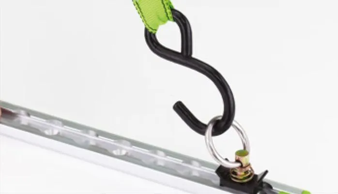 Rated to 750LBS working load limit with a 1500LBS breaking strain. The set includes 2 tracks and four spring loaded locking anchor rings. Additional anchor rings can be purchased separately.