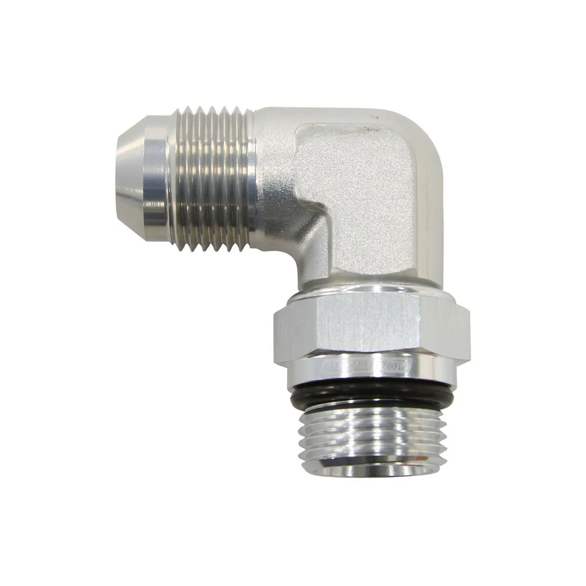 Male to Male full flow ORB to AN adapter. Adapt from an ORB thread to AN flare with a 90 degree bend and full 360 degree swivel. Various sizes available.