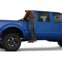 Side steps for hard-working trucks. The AMP Research Bedstep2 mounts just behind the cab, forward of the rear wheel, providing a faster, easier and safer route to access toolboxes, equipment and cargo in the bed. Easily installed, this frame-mounted, retractable truck step can be mounted on either side of the truck box, and it flips down or retracts with just the nudge of your foot.