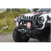 Inspired by the classic ARB Wrangler JK Stubby Bumper, the newly developed ARB Wrangler JL Stubby Bumper is designed for the off-roader who is in need of a winch mounting platform while maintaining maximum clearance for larger diameter tires. Generally vehicles that run larger than 37 inch tires may rub the wings of a traditional style ARB Deluxe Bumper. The Stubby Bumper eliminates this issue on the Jeep Wrangler JL as it is only a little wider than the vehicles chassis. For recovery situations each wing section features jacking points suitable for an ARB JACK or mechanical recovery jack. Antenna tabs on main tube can be used for fitment of communication antennas or driving lights to the bumper. Central on each outer wing section are 0.8 thick 350 grade recovery points which tie through the wings and into the chassis mounts directly giving the strongest possible recovery point. The winch platform will allow the mounting of most traditional low mount style Warn winches and narrow mount pattern competition type winches. A bracket is provided for those who wish to run their control box in the center of the bumper. Two front ?flip up style license plate mounts are provided. One to suit roller fairleads and one for the hawse type fairlead. These allow the number plate to be located over the fairlead and flipped up out of the way when the winch is in use.