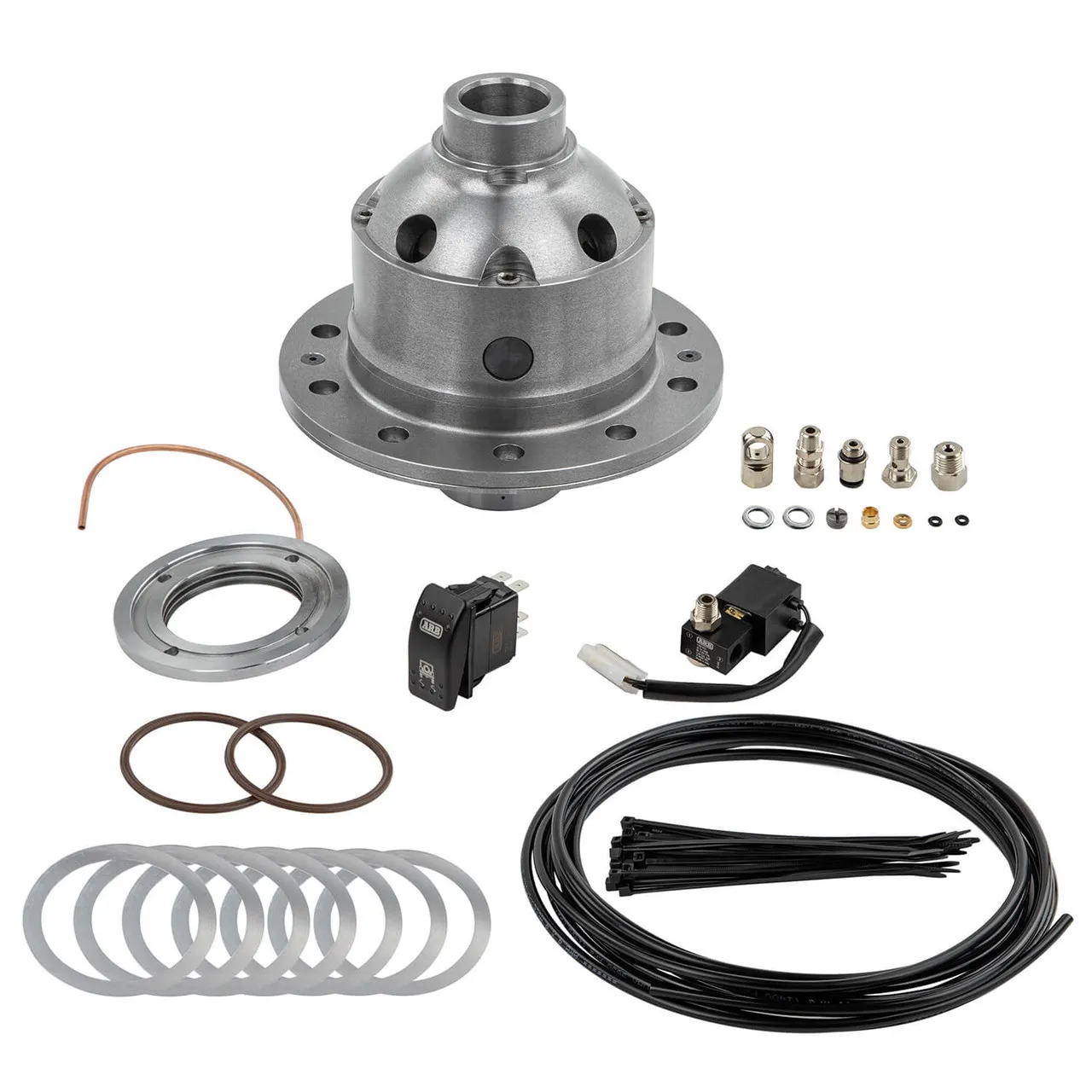 The world's premier traction aid, an ARB Air Locker(TM) keep you moving in all conditions. With the flick of the switch an Air Locker gives instant lock at any moment and its super strong design allows activation at any speed allowing you to tackle the toughest terrain. The advantage of the Air Locker lies in the pneumatically operated locking system inside the differential. When activated, the Air Locker prevents the internal differential gears from rotating and therefore prevents the axle shafts from turning independently of each other. With both wheels tied directly to the rotation of the ring gear, the vehicle maintains maximum possible traction at all times. When unlocked, it operates like a conventional open differential. An Air Locker equipped vehicle can be driven in a slower, safer and more controlled manner, greatly reducing the likelihood of vehicle damage and environmental impact.