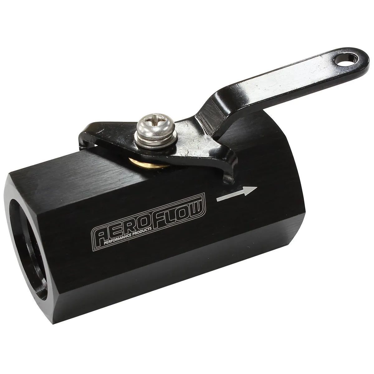 Aeroflow Performance shut-off valves allow you to easily control the flow of fluid with just a simple quick turn of a handle. These shut-off valves have a large handle that make them easy to use along with a hole to attach a cable. Internally they feature a stainless-steel ball and the outside is clearly marked for proper flow direction. Made from 6061 billet aluminium construction with anodized finishes, and are available in a variety of AN sizes to best suit your application requirements. This makes them great for applications such as an emergency fuel shut, anti-theft device or for draining fluid. They are both e85 and methanol safe, we do not recommend these for nitro fuel however. These valves have a maximum pressure rating of 300 psi