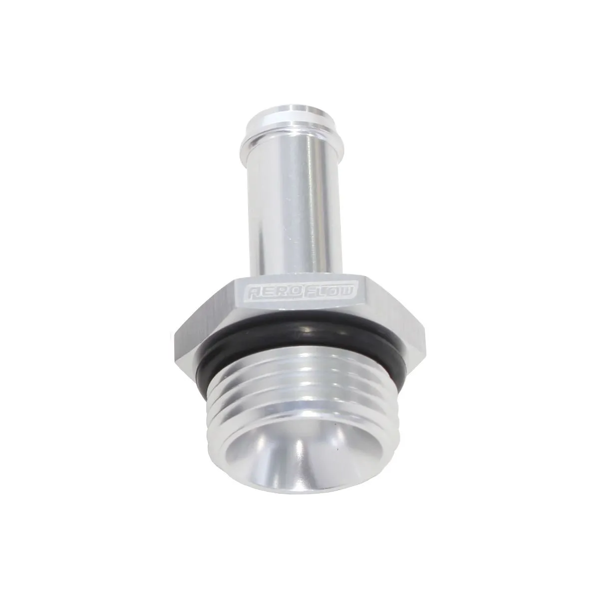 Aeroflow male ORB to straight hose barb fittings are a simple solution to connect a hose to your vehicle. Applications can include fuel, oil, water, vacuum and air. Machined from quality 6061-T6 aluminium. Manufactured to our exact tolerances and utilise male AN ORB (O-ring boss) port to screw on to any female threaded AN bung with a straight hose barb to allow a hose to be pushed straight on.