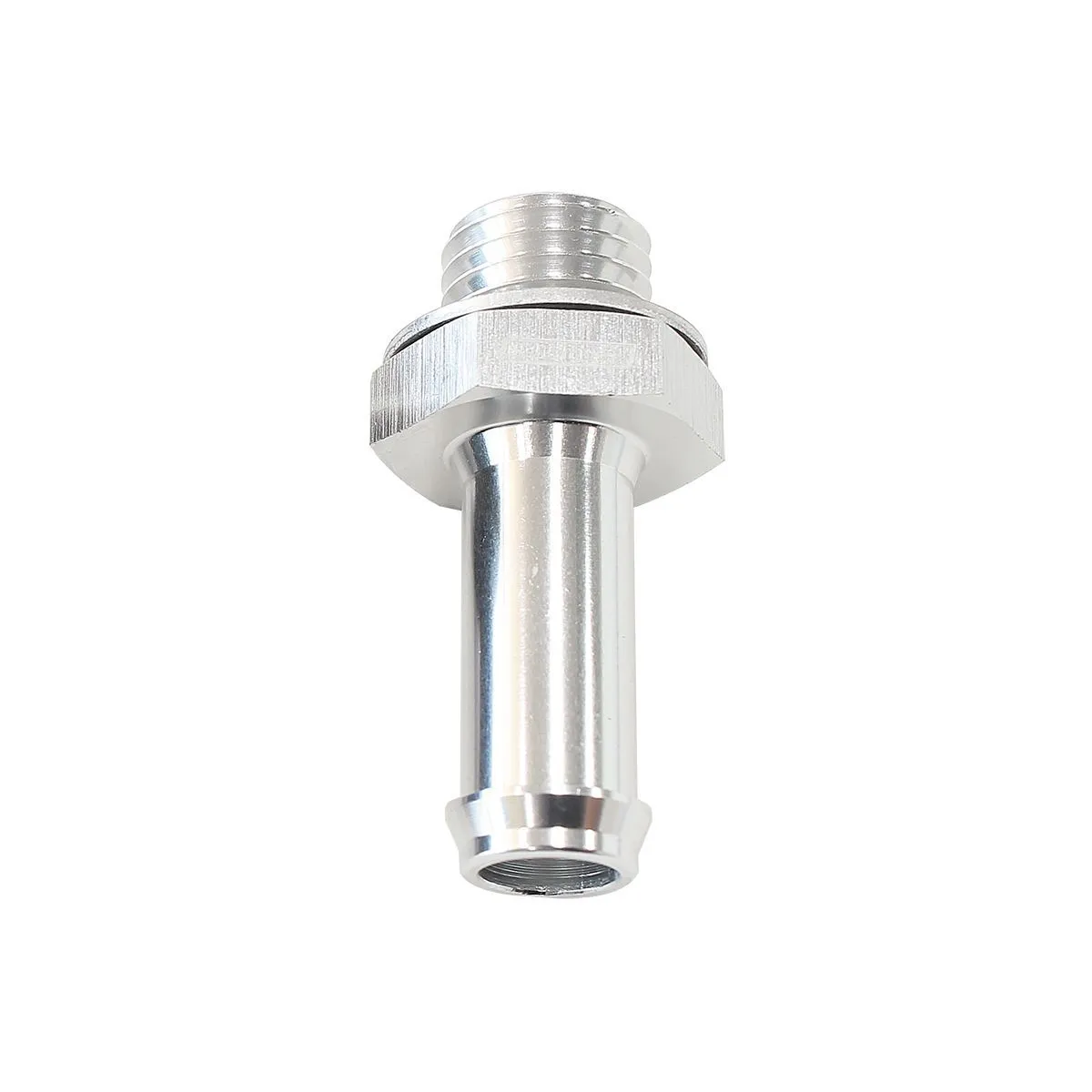 Aluminium straight metric to barb adapter. Includes aluminium crush washer for metric thread seal.