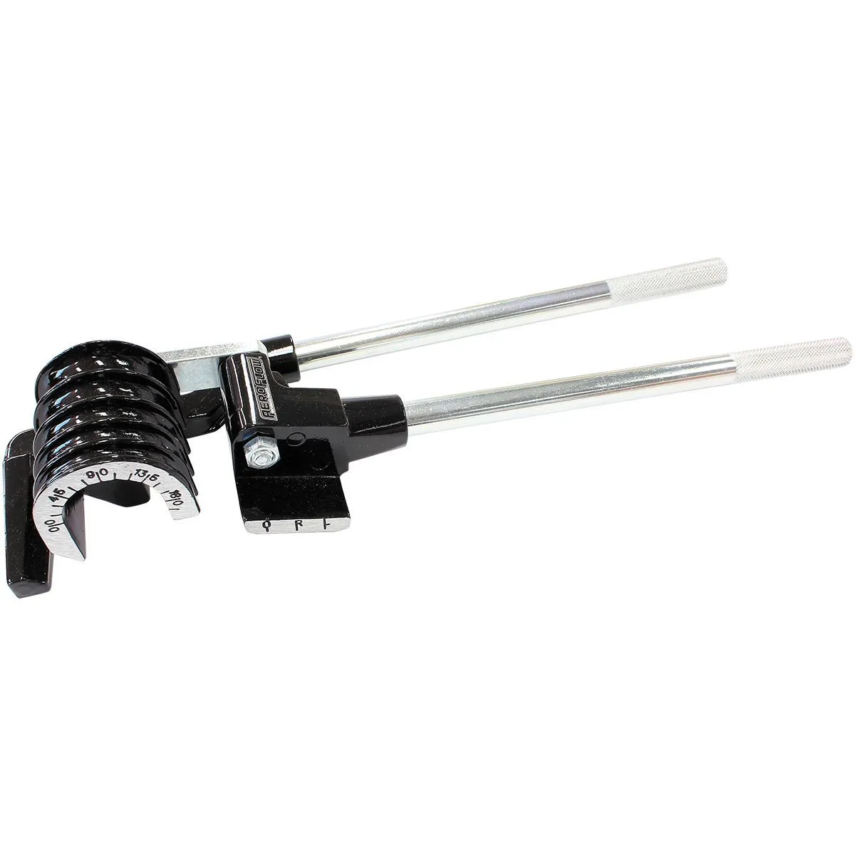 The Aeroflow Performance 5 in 1 pipe bender hand tool is designed for creating ripple-free and clean bends in pipes with precision in a range of materials such as copper and aluminium Aeroflow hardline. This tube bender is not recommeded for stainless steel line. This 180 degree bender tool is capable of bending 1/4", 5/16", 3/8", 1/2" and 5/8" tubes with ease. It features a calibration scale for easy accurate bending of right and left bends providing you with a reliable guide to work with.
