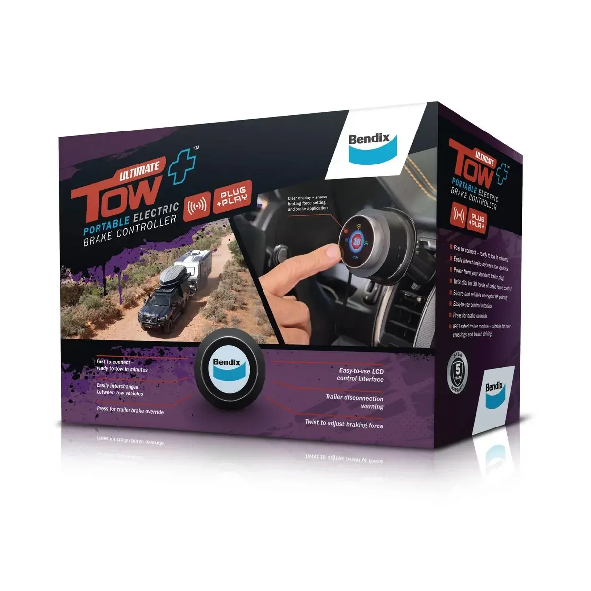 Designed and made in Australia, Bendix’s The Ultimate Tow+™ Portable Electric Brake Controller features an IP67-rated trailer module that’s suitable for river crossings and beach driving.