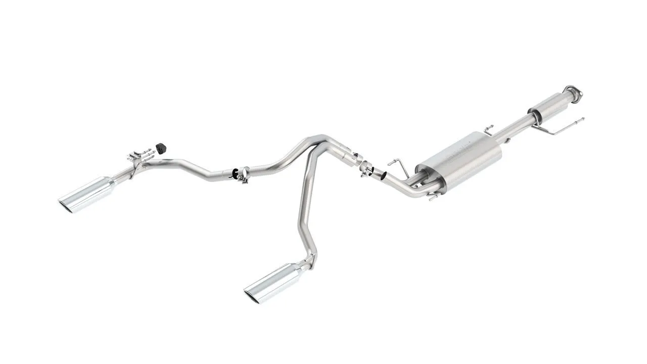 System features polished T-304 stainless steel tips. BORLA Cat-Back & Axle-Back exhaust systems feature patented straight-through and multi-core technology to unleash hidden horsepower. Increased exhaust velocity adds power, driving excitement, fuel economy, and the distinctive BORLA Sound of Power respected by motoring enthusiasts everywhere.