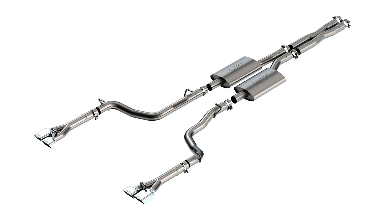 System features a merge X-Pipe for increased performance and improved sound, and polished T-304 stainless steel tips for sharp appearance. BORLA Cat-Back & Axle-Back exhaust systems feature patented straight-through and multi-core technology to unleash hidden horsepower. Increased exhaust velocity adds power, driving excitement, fuel economy, and the distinctive BORLA Sound of Power respected by motoring enthusiasts everywhere.