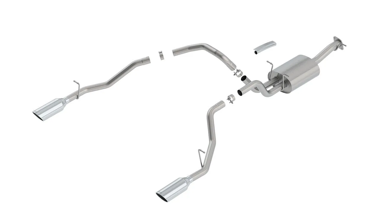 Fits through the factory bumper cut-outs (bumper has notches on the bottom). Includes the Rebel. Does NOT fit Ram Classic. This system features 5" bright chrome on T-304 stainless steel tips. BORLA Cat-Back and Axle-Back multi-core technology is designed to unleash hidden horsepower. Increased exhaust velocity adds power, driving excitement, fuel economy, and the distinctive BORLA Sound of Power respected by motoring enthusiasts everywhere.