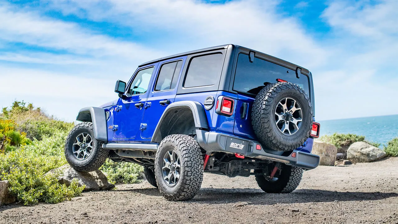 EXCEPT 4XE models. The next generation Jeep Wrangler is here and so are the BORLA Exhaust systems. The BORLA high clearance Climber Cat-Back system is the solution for those who plan to take the road less traveled. Providing additional clearance, the Climber system is perfect for off-roading, overlanding, and rock crawling. The 140822 features a 2.75" brushed T-304 stainless steel turn down tip and the Touring sound level. A throaty upgrade to the stock system. Also available is the S-Type sound level a more aggressive, sporty sound. Both are tailored specifically for the Wrangler‘s 2.0L Turbo engine. They deliver a noticeable change in tone and increase in overall volume without being intrusive. Our systems feature a No-Drone guarantee which ensures an enjoyable ride inside the vehicle.