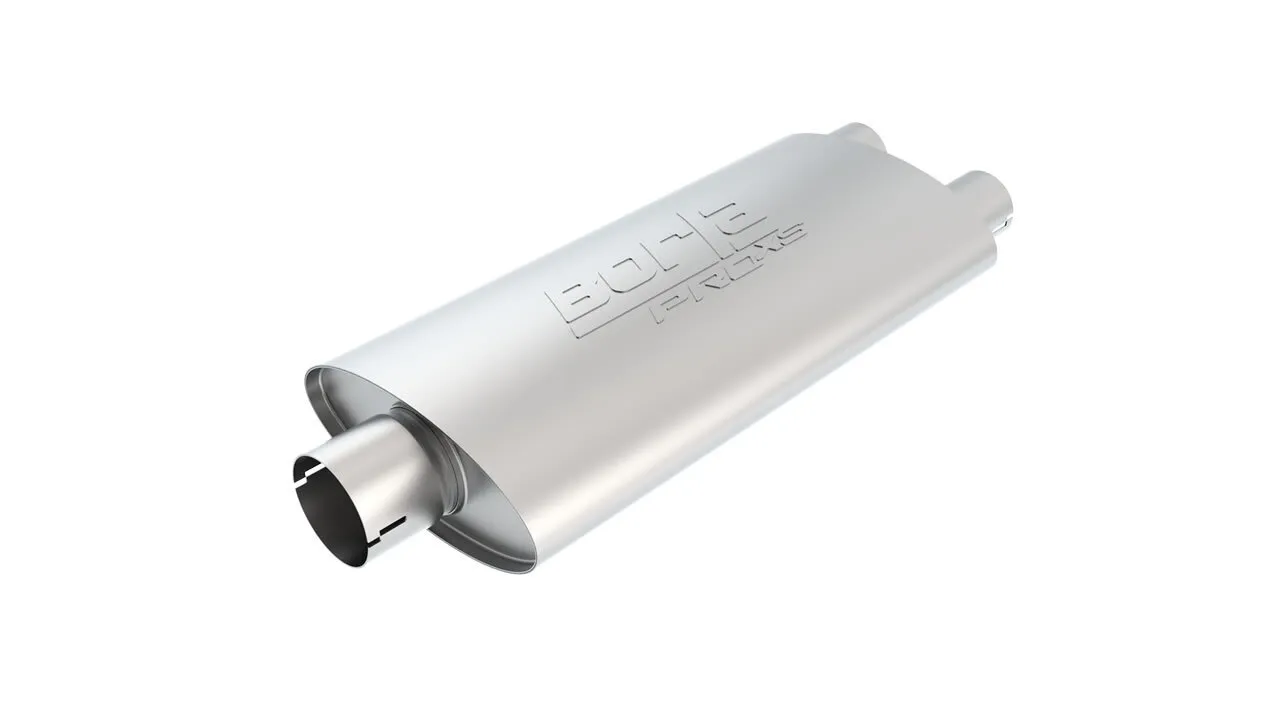 Single inlet and dual outlet. Notched necks for easy clamp-on installation using 1" wide band style clamps (clamps not included). This muffler is generally used in a system that has a single inlet and dual outlets, but it can also be installed in a system with dual inlets and a single outlet. Reversible design for installation flexibility. High-quality T-304 austenitic stainless steel will never rust. 100% welded construction for strength. Free Flow design for improved performance. High-temperature continuous-filament fiber (CFF) acoustic material for sound control. Natural mill finish can be brushed or polished prior to installation.
