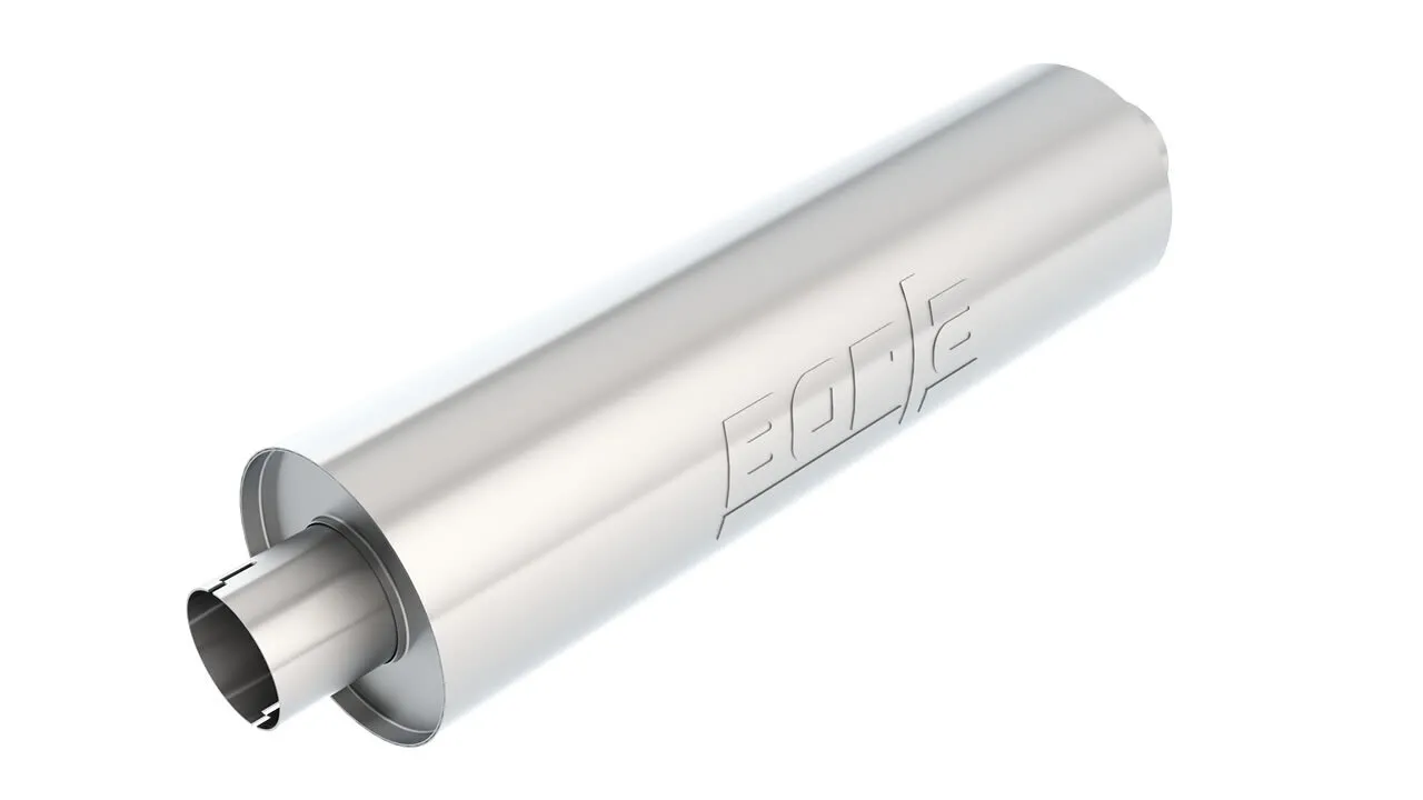 Developed for truck applications and other applications that require a long body muffler. Notched necks for clamp in installation using 1" wide band style clamps 18330 (clamps not included). Alternate muffler with Un-Notched necks is 40436. If clamping, use 3" wide band clamps 18006. Reversible design for installation flexibility. High-quality T-304 austenitic stainless steel will never rust. 100% welded construction for strength. Free Flow design for improved performance. High-temperature continuous-filament fiber (CFF) acoustic material for sound control. Natural mill finish can be brushed or polished prior to installation.