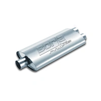 Single inlet and dual outlet. Reversible design for installation flexibility. This muffler is generally used in a system that has a single inlet and dual outlets, but it can also be installed in a system with dual inlets and a single outlet. High-quality T-304 austenitic stainless steel will never rust. 100% welded construction for strength. Free Flow design for improved performance. High-temperature continuous-filament fiber (CFF) acoustic material for sound control. Natural mill finish can be brushed or polished prior to installation.