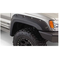 For extreme off-road use, there's nothing else like Bushwacker Cut-Out Fender Flares. Each set of Cut-Out Fender Flares is individually designed for your truck, to maximize off-road wheel travel and maintain adequate tire coverage. That custom approach means a smoother appearance, greater strength, and easier bolt-on installation with tough stainless steel hardware. Cut-Out Fender Flares are made from thick, warp-proof Dura-Flex 2000, our own proprietary material, engineered for added durability and flexibility in severe conditions. Its UV protection guards against chalking, while its pro-grade matte black finish looks great as-is, or custom painted to create your own personal look.