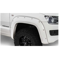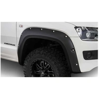 With their recessed stainless steel bolts and massive presence, Pocket Style Fender Flares are a Bushwacker original and an off-road icon. They give you the hard-core look of bolt-on flares, with no body-side sheet metal drilling required. Pocket Style Fender Flares are custom-designed for your vehicle to complement oversized tires and high-clearance lift kits. You can mount them right out of the box with their tough, OEM-style matte black finish they're UV protected so they won't chalk. You can also paint them to match or accent the body color for a factory-custom look. Pocket Style Fender Flares are made from our thick, warp-resistant Dura-Flex 2000 material and tailor-made for added durability and flexibility on the trail. When you need maximum tire coverage with minimum time and effort, it's in the pocket. Pocket Style Fender Flares from Bushwacker.
