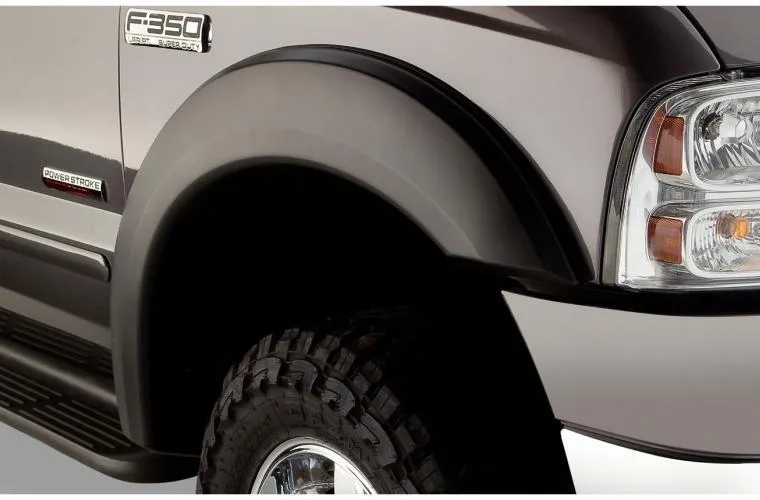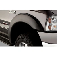 You've equipped your vehicle with oversize wheels and tires for serious off-road traction and clearance. Now you need extra tire coverage to protect your rig's body and maybe even comply with local laws. Bushwacker Extend-A-Fender Flares deliver premium-grade protection and style matched to oversized tires, yet as tough as they are, they go on easily with no drilling required. You can install them in minutes and enjoy them for years. Our exclusive Dura-Flex 2000 material is designed for added durability and flexibility with built-in UV protection. Your Extend-A-Fender Flares resist chalking, cracking, and warping, whether you leave them with their OEM-style matte black finish or paint them for a totally personalized look. Either way, your truck will look factory-equipped for your off-road tires. Extend-A-Fender Flares go on easy, perform tough, and look great.