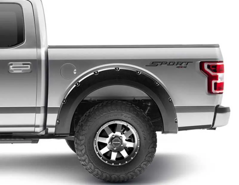 With their recessed stainless steel bolts and massive presence, Pocket Style Fender Flares are a Bushwacker original and an off-road icon. They give you the hard-core look of bolt-on flares, with no body-side sheet metal drilling required. Pocket Style Fender Flares are custom-designed for your vehicle to complement oversized tires and high-clearance lift kits. You can mount them right out of the box with their tough, OEM-style matte black finish they're UV protected so they won't chalk. You can also paint them to match or accent the body color for a factory-custom look. Pocket Style Fender Flares are made from our thick, warp-resistant Dura-Flex 2000 material and tailor-made for added durability and flexibility on the trail. When you need maximum tire coverage with minimum time and effort, it's in the pocket. Pocket Style Fender Flares from Bushwacker.