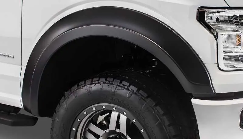 You've equipped your vehicle with oversize wheels and tires for serious off-road traction and clearance. Now you need extra tire coverage to protect your rig's body and maybe even comply with local laws. Bushwacker Extend-A-Fender Flares deliver premium-grade protection and style matched to oversized tires, yet as tough as they are, they go on easily with no drilling required. You can install them in minutes and enjoy them for years. Our exclusive Dura-Flex 2000 material is designed for added durability and flexibility with built-in UV protection. Your Extend-A-Fender Flares resist chalking, cracking, and warping, whether you leave them with their OEM-style matte black finish or paint them for a totally personalized look. Either way, your truck will look factory-equipped for your off-road tires. Extend-A-Fender Flares go on easy, perform tough, and look great.