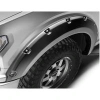 With their recessed stainless steel bolts and massive presence, Pocket Style Fender Flares are a Bushwacker original and an off-road icon. They give you the hard-core look of bolt-on flares, with no body-side sheet metal drilling required. Pocket Style Fender Flares are custom-designed for your vehicle to complement oversized tires and high-clearance lift kits. You can mount them right out of the box with their tough, OEM-style matte black finish they're UV protected so they won't chalk. You can also paint them to match or accent the body color for a factory-custom look. Pocket Style Fender Flares are made from our thick, warp-resistant Dura-Flex 2000 material and tailor-made for added durability and flexibility on the trail. When you need maximum tire coverage with minimum time and effort, it's in the pocket. Pocket Style Fender Flares from Bushwacker.