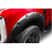 With their recessed stainless steel bolts and massive presence, Pocket Style Fender Flares are a Bushwacker original and an off-road icon. They give you the hard-core look of bolt-on flares, with no body-side sheet metal drilling required. Pocket Style Fender Flares are custom-designed for your vehicle to complement oversized tires and high-clearance lift kits. You can mount them right out of the box with their tough, OEM-style matte black finish they're UV protected so they won't chalk. You can also paint them to match or accent the body color for a factory-custom look. Pocket Style Fender Flares are made from our thick, warp-resistant Dura-Flex 2000 material and tailor-made for added durability and flexibility on the trail. When you need maximum tire coverage with minimum time and effort, it's in the pocket. Pocket Style Fender Flares from Bushwacker.