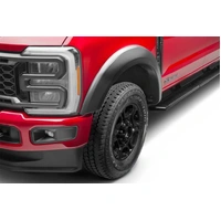You've equipped your vehicle with oversize wheels and tires for serious off-road traction and clearance. Now you need extra tire coverage to protect your rig's body and maybe even comply with local laws. Bushwacker Extend-A-Fender Flares deliver premium-grade protection and style matched to oversized tires, yet as tough as they are, they go on easily with no drilling required. You can install them in minutes and enjoy them for years. Our exclusive Dura-Flex 2000 material is designed for added durability and flexibility with built-in UV protection. Your Extend-A-Fender Flares resist chalking, cracking, and warping, whether you leave them with their OEM-style matte black finish or paint them for a totally personalized look. Either way, your truck will look factory-equipped for your off-road tires. Extend-A-Fender Flares go on easy, perform tough, and look great.