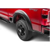 You've equipped your vehicle with oversize wheels and tires for serious off-road traction and clearance. Now you need extra tire coverage to protect your rig's body and maybe even comply with local laws. Bushwacker Extend-A-Fender Flares deliver premium-grade protection and style matched to oversized tires, yet as tough as they are, they go on easily with no drilling required. You can install them in minutes and enjoy them for years. Our exclusive Dura-Flex 2000 material is designed for added durability and flexibility with built-in UV protection. Your Extend-A-Fender Flares resist chalking, cracking, and warping, whether you leave them with their OEM-style matte black finish or paint them for a totally personalized look. Either way, your truck will look factory-equipped for your off-road tires. Extend-A-Fender Flares go on easy, perform tough, and look great.
