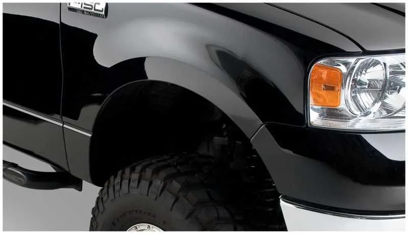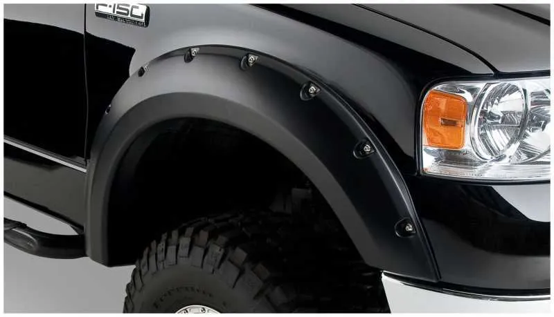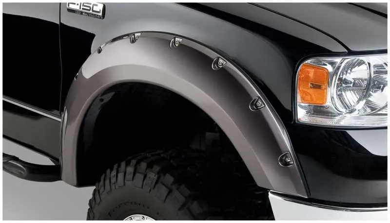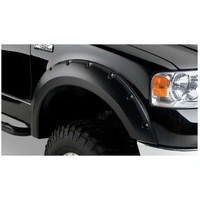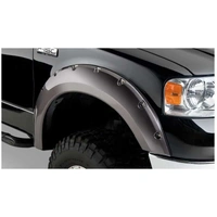 With their recessed stainless steel bolts and massive presence, Pocket Style Fender Flares are a Bushwacker original and an off-road icon. They give you the hard-core look of bolt-on flares, with no body-side sheet metal drilling required. Pocket Style Fender Flares are custom-designed for your vehicle to complement oversized tires and high-clearance lift kits. You can mount them right out of the box with their tough, OEM-style matte black finish they're UV protected so they won't chalk. You can also paint them to match or accent the body color for a factory-custom look. Pocket Style Fender Flares are made from our thick, warp-resistant Dura-Flex 2000 material and tailor-made for added durability and flexibility on the trail. When you need maximum tire coverage with minimum time and effort, it's in the pocket. Pocket Style Fender Flares from Bushwacker.