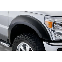You've equipped your vehicle with oversize wheels and tires for serious off-road traction and clearance. Now you need extra tire coverage to protect your rig's body and maybe even comply with local laws. Bushwacker Extend-A-Fender Flares deliver premium-grade protection and style matched to oversized tires, yet as tough as they are, they go on easily with no drilling required. You can install them in minutes and enjoy them for years. Our exclusive Dura-Flex 2000 material is designed for added durability and flexibility with built-in UV protection. Your Extend-A-Fender Flares resist chalking, cracking, and warping, whether you leave them with their OEM-style matte black finish or paint them for a totally personalized look. Either way, your truck will look factory-equipped for your off-road tires. Extend-A-Fender Flares go on easy, perform tough, and look great.