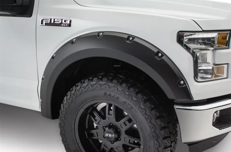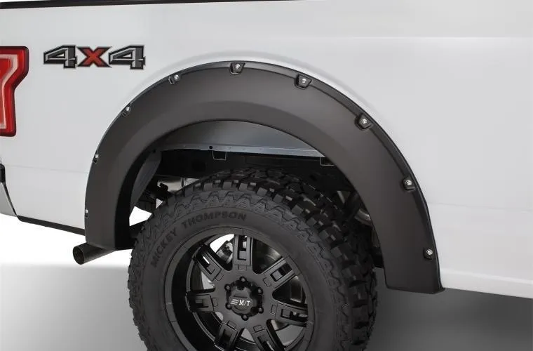 Bushwacker Pocket Style® Fender Flares are a Bushwacker original and an off-road icon with their recessed stainless steel bolts and massive presence. These flares are custom designed to complement oversized tires while providing premium tire protection. When you need maximum tire coverage with minimum time and effort, it's in the pocket. Pocket Style Fender Flares from Bushwacker.
