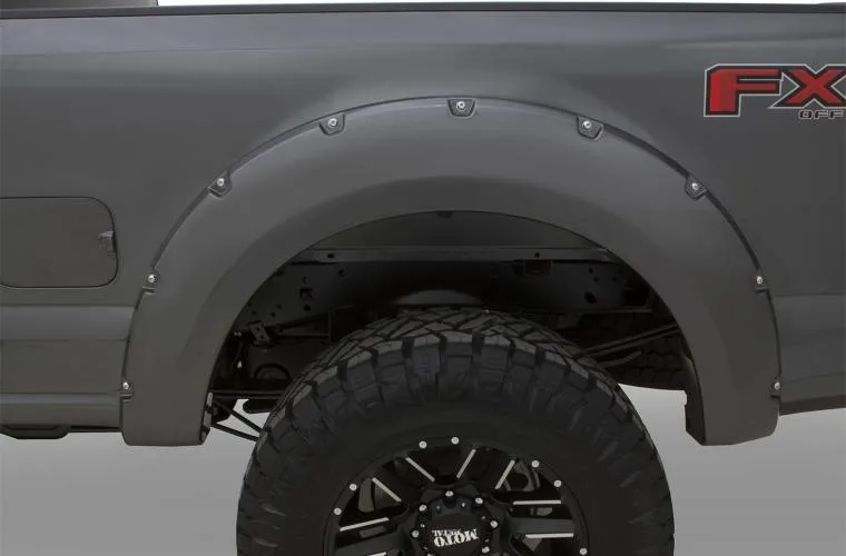 Bushwacker Pocket Style® Fender Flares are a Bushwacker original and an off-road icon with their recessed stainless steel bolts and massive presence. These flares are custom designed to complement oversized tires while providing premium tire protection. When you need maximum tire coverage with minimum time and effort, it's in the pocket. Pocket Style Fender Flares from Bushwacker.