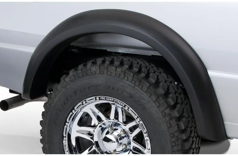 You've equipped your vehicle with oversize wheels and tires for serious off-road traction and clearance. Now you need extra tire coverage to protect your rig's body and maybe even comply with local laws. Bushwacker Extend-A-Fender Flares deliver premium-grade protection and style matched to oversized tires, yet as tough as they are, they go on easily with no drilling required. You can install them in minutes and enjoy them for years. Our exclusive Dura-Flex 2000 material is designed for added durability and flexibility with built-in UV protection. Your Extend-A-Fender Flares resist chalking, cracking, and warping, whether you leave them with their OEM-style matte black finish or paint them for a totally personalized look. Either way, your truck will look factory-equipped for your off-road tires. Extend-A-Fender Flares go on easy, perform tough, and look great.