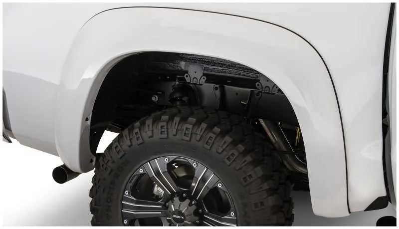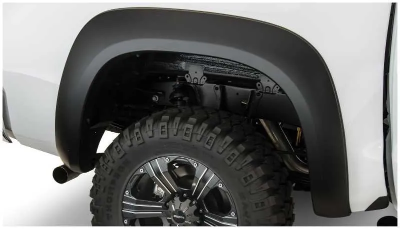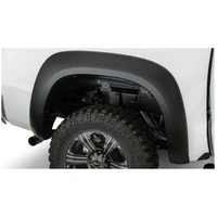 You've equipped your vehicle with oversize wheels and tires for serious off-road traction and clearance. Now you need extra tire coverage to protect your rig's body and maybe even comply with local laws. Bushwacker Extend-A-Fender Flares deliver premium-grade protection and style matched to oversized tires, yet as tough as they are, they go on easily with no drilling required. You can install them in minutes and enjoy them for years. Our exclusive Dura-Flex 2000 material is designed for added durability and flexibility with built-in UV protection. Your Extend-A-Fender Flares resist chalking, cracking, and warping, whether you leave them with their OEM-style matte black finish or paint them for a totally personalized look. Either way, your truck will look factory-equipped for your off-road tires. Extend-A-Fender Flares go on easy, perform tough, and look great.