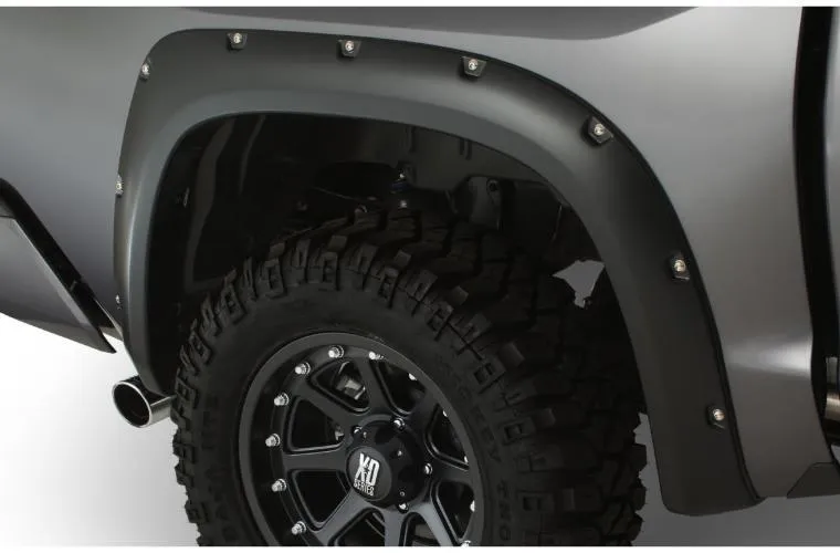 Bushwacker Pocket Style® Fender Flares are a Bushwacker original and an off-road icon with their recessed stainless steel bolts and massive presence. These flares are custom designed to complement oversized tires while providing premium tire protection. When you need maximum tire coverage with minimum time and effort, it's in the pocket. Pocket Style Fender Flares from Bushwacker.